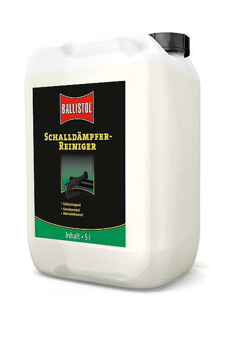 Insbesondere nicht zerlegbare oder aus Carbon gefertigte Schalldämpfer sind schwierig zu reinigen. Filigrane Lamellen und Lochreihen erhöhen die Dämpferleistung, erschweren jedoch die Reinigung. Mit dem BALLISTOL Schalldämpferreiniger ist diese sichtlich einfach. Der Schalldämpfer wird von einer Seite mit einem konischen Stopfen aus Gummi verschlossen. Von der anderen Seite wird der Dämpfer vollständig mit dem puren Reiniger aufgefüllt. Die Einwirkzeit sollte 4-8 Stunden betragen.